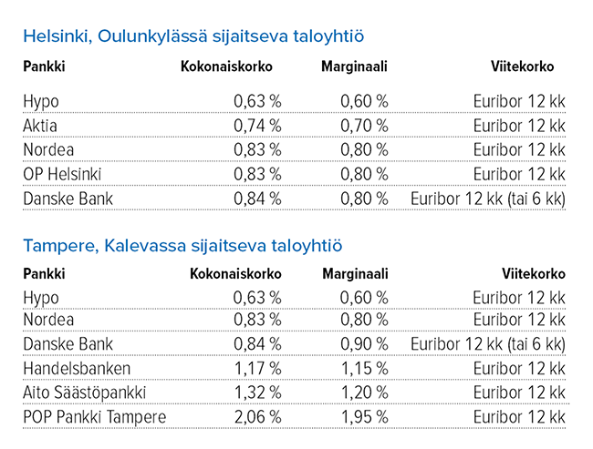 Taloyhtiö pyysi tarjoukset viideltä pankilta helmikuussa 2020.